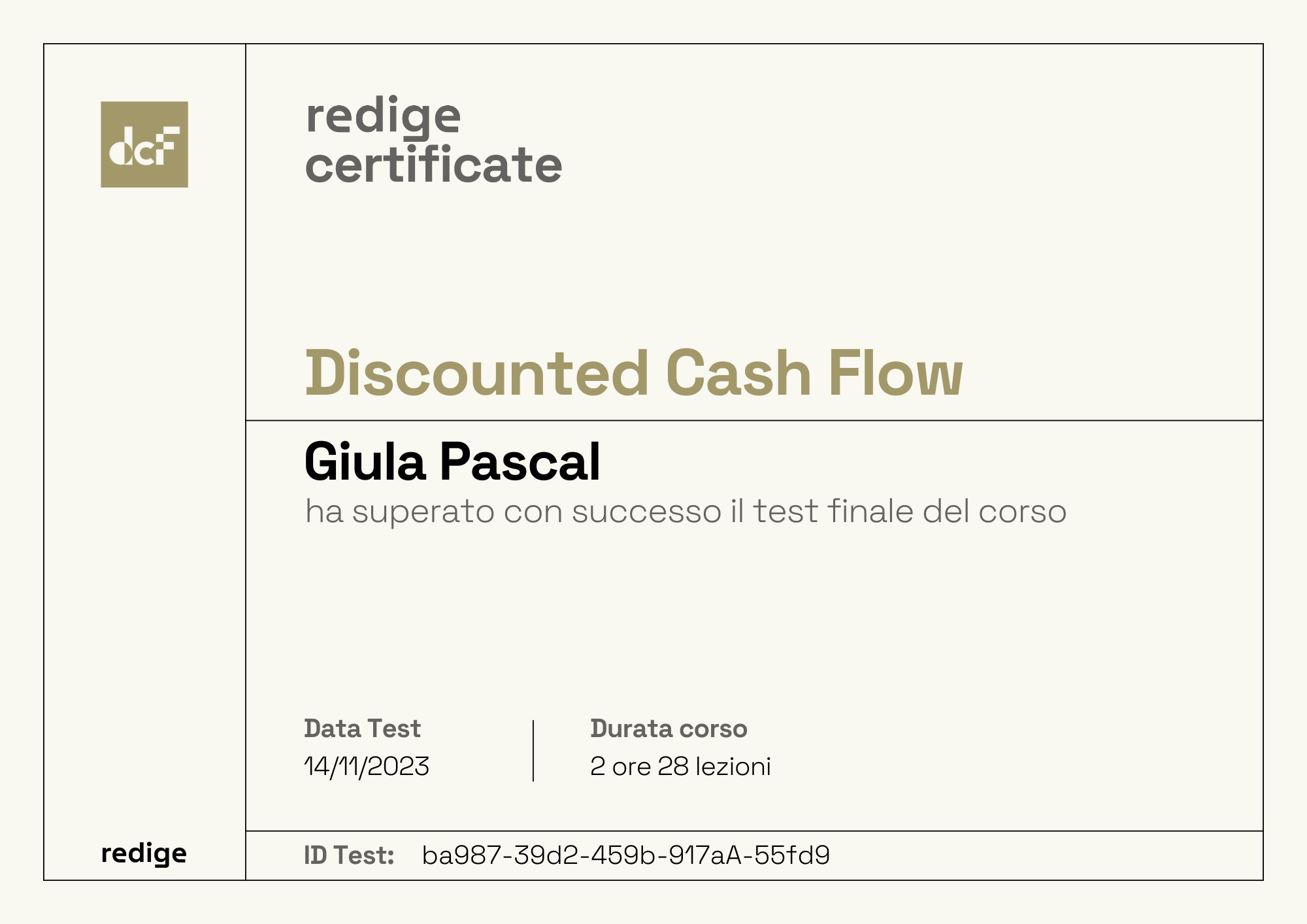Attraverso il DCF si stima la valutazione di un’azienda o di un'azione tenendo in considerazione fattori propri della società ma anche macroeconomici e del contesto in cui opera.